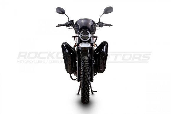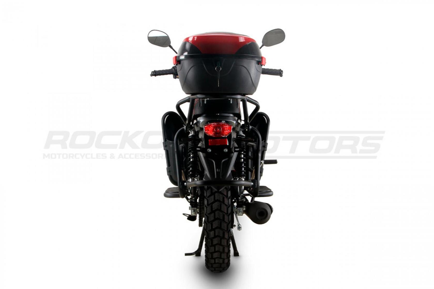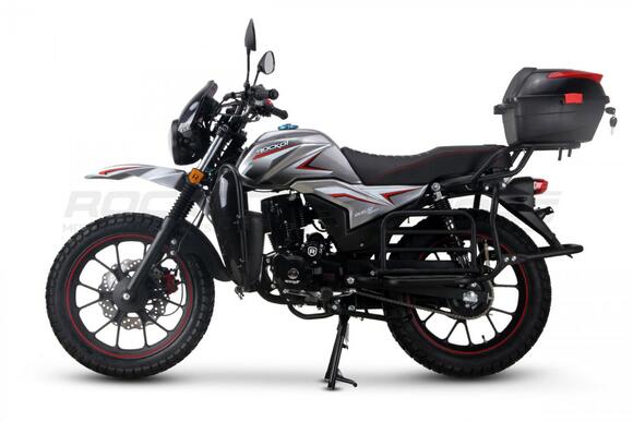 ROCKOT QUEST 150 - новый, дорожный мотоцикл от компании ROCKOT-MOTORS, с большим потенциалом на длительные поездки, независимо от типа дорожного покрытия. Благодаря своим компактным размерам, короткой колесной базе, мотоцикл отлично чувствует себя в городской среде с большим объемом дорожного трафика. Максимальная скорость ROCKOT QUEST 150 - до 92 км/ч на стандартных приводных звездах. Масса мотоцикла -126 килограмм, но при небольшой высоте по седлу в 820 мм и низкому центру тяжести, он ощущается достаточно легким.Мотоцикл имеет ЭПТС, оснащен цветной электронной панелью приборов, зеркалами, всей необходимой светотехникой, что позволяет законно передвигаться по дорогам общего пользования. ДизайнМотоцикл построен в классическом исполнении, но имеет множество современных, технологичных решений.Все световые приборы - светодиодные и очень яркие. Передняя фара имеет круглую классическую форму, но стоит ее включить, как мотоцикл обретает совершенно другой вид.Цветовая гамма модели имеет три варианта окраски: бело-красный, черный и серый.Конечно же, бросается в глаза оснащение мотоцикла туристической багажной системой. На заднем багажнике установлен жесткий центральный кофр. Откидные боковые багажники, позволяют перевозить объемный груз, а также устанавливать боковые багажные сумки. Глядя на мотоцикл, складывается впечатление, что все его пространство использовано максимально практично. Даже в дугах безопасности встроены дополнительные багажные карманы.Топливная системаВ основе топливной системы ROCKOT QUEST 150 - большой топливный бак объемом 12 литров. В зависимости от условий эксплуатации и стиля езды, расход топлива варьируется в районе 3-3,5 литров на 100 километров. Это позволяет преодолевать большие расстояния на одном баке бензина. Используемый тип топлива - бензин АИ-92. Образует топливную смесь - карбюратор PZ27 с ускорительным насосом. Ускорительный насос исключает момент “провала” при резком открытии дроссельной заслонки.Тормозная системаПо канонам классического мотоциклостроения, ROCKOT QUEST 150 имеет комбинированную тормозную систему. Спереди установлен дисковый гидравлический тормоз, с двухпоршневым суппортом, яркого красного цвета. Задний тормоз - механический, барабанный.Кому подойдет ROCKOT QUEST 150Мотоцикл будет очень полезен новичкам. Его небольшие габаритные размеры, низкий центр тяжести, малая высота по седлу - позволяют быстро освоить технику управления мотоциклом как в условиях города, так и бездорожья. С практичной точки зрения, мотоцикл понравится любителям выезжать на отдых за город. Отличная туристическая подготовка, позволит перевозить все, что Вам может потребоваться во время отдыха.Благодаря заложенной надежности в конструкцию двигателя и мотоцикла - ROCKOT QUEST 150 оценит старшее поколение, для кого требуется простая и надежная техника.