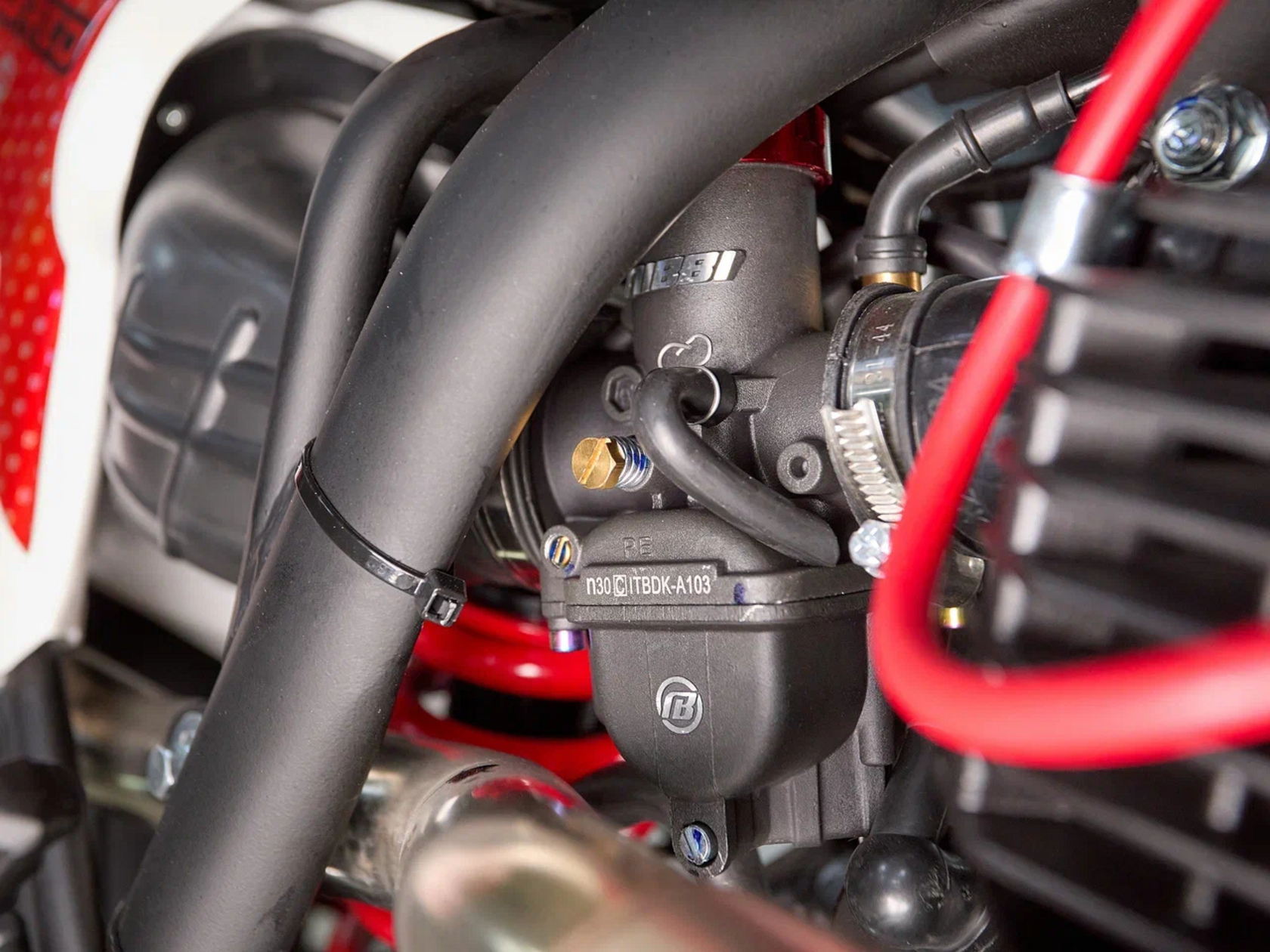 Двигатель – Zongshen PR300 172FMM-5 с баланс валом и карбюратором nibbi racing pe30. Воздушное охлаждение.