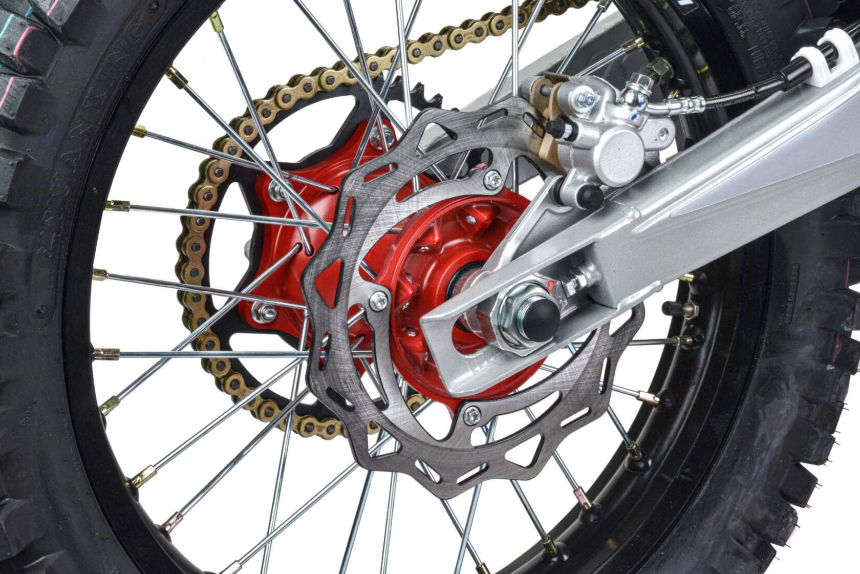 Новинка сезона 2024 года!Мотоцикл Кросс 300 XT300 HS (175FMM 4V) это отличный кроссовый мотоцикл. Имеет хорошую проходимость и тяговую мощность за счет установленного 4х клапанного двигателя 175FMM, мощностью 25 л.с., и карбюратором NIBBI PE 30.Разгоняется до 140 км/ч. Выхлопная система с резонатором, глушитель алюминиевый. Идеален для бездорожья, т.к. его кроссовые шины (110-100) и (80-100) просто созданы для езды по мягкому и среднему грунту.Телескопическая вилка перевернутого типа GPX c регулировкой (сжатие и отбой) с усиленными траверсами позволяет легко преодолевать ямы, ухабы и другие неровности. Задняя подвеска маятниковая с прогрессией – моноамортизатор с бачком и регулировкой на сжатие и отбой.Его дерзкий дизайн подчёркивает неуступчивый спортивный характер байка.Мотоцикл весит 120 кг, выдерживает нагрузку до 150 кг. Прочный облицовочный пластик не ломается при сгибании, защищает от грязи. Надёжно закрепленный руль имеет переменное сечение: 28 мм в месте крепления и 22 мм на концах под грипсами, а также короткоходную ручку газа. На мотоцикле установлена защита рук. Покрышки на алюминиевых ободах оснащены усиленными спицами и антибуксаторами, размер заднего колеса — 18 дюймов, переднего — 21 дюйм, крепятся на полые оси.Для запуска двигателя можно использовать электростартёр или кикстартёр. Система зажигания электронная (CDI). Механическая трансмиссия содержит 5 передач. У мотокросса отличный запас хода: объём топливного бака — 7 л, расход топлива — 5 л на 100 км. Передняя светодиодная линзованная фара обновленного дизайна легко включается поворотом замка зажигания и позволяет ездить в сумерках и темноте, возможность установки зеркал заднего вида. Карбоновая защита глушителя. Металлическая защита картера. Нейлоновая защита рамы. Цепь 520 с ловушкой. Задняя звезда алюминиевая. Ступица на 6 болтов. Увеличенный диаметр передней и задней осей колеса. Есть защита тормозного диска, защита рук и счетчик моточасов .Мотоцикл оснащён надёжными тормозами с передним двухпоршневым тормозным суппортом и задним однопоршневым тормозным суппортом. Передний тормозной диск оборудован защитой.