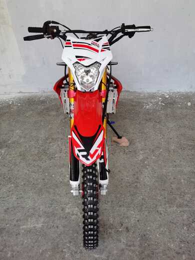 Это полноразмерный кроссовый мотоцикл его база по осям составляет 1430 мм., и габаритами 2180х800х1300 мм. Высота по седлу составляет 940 мм, что позволяет комфортно себя чувствовать райдерам среднего роста.