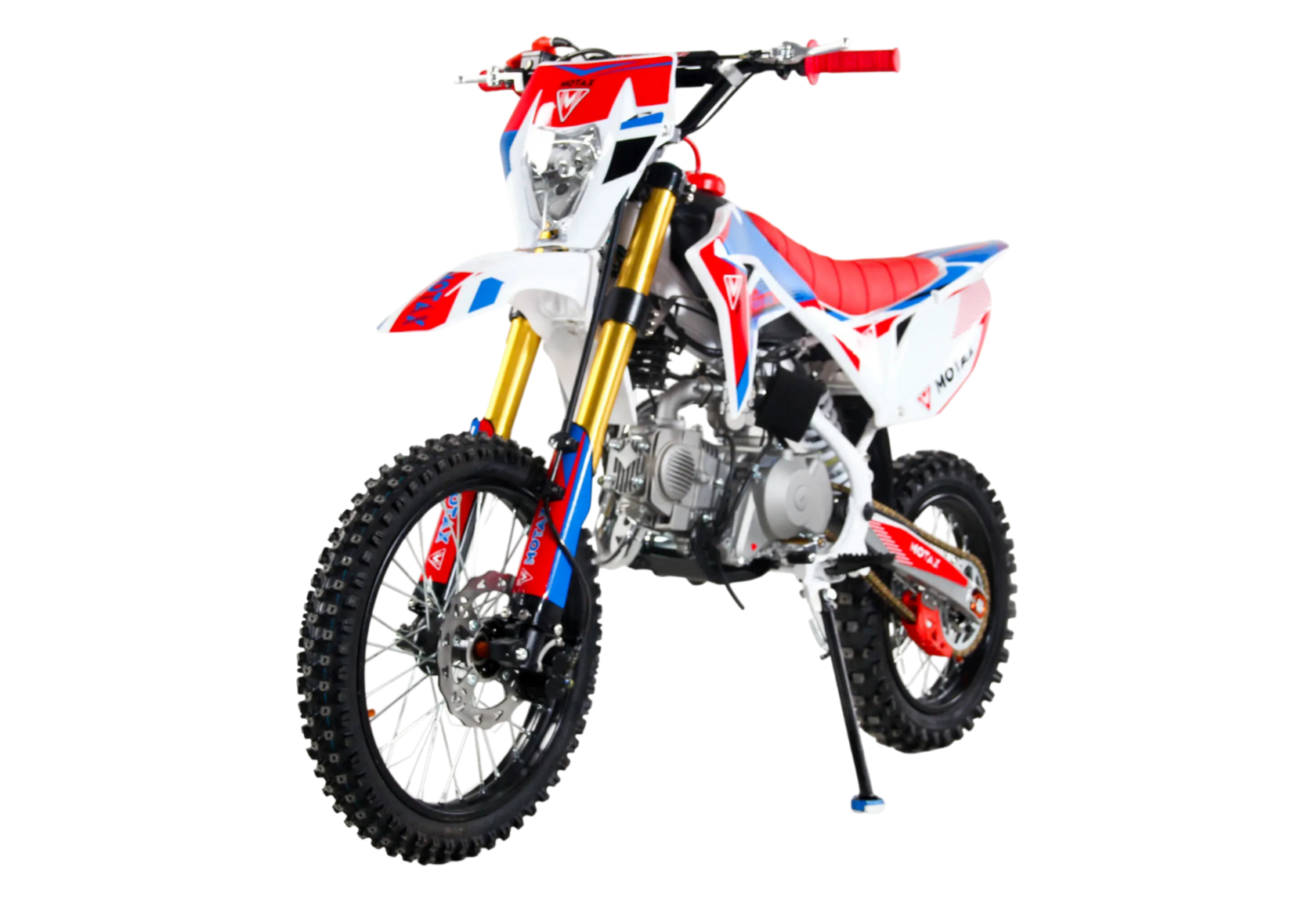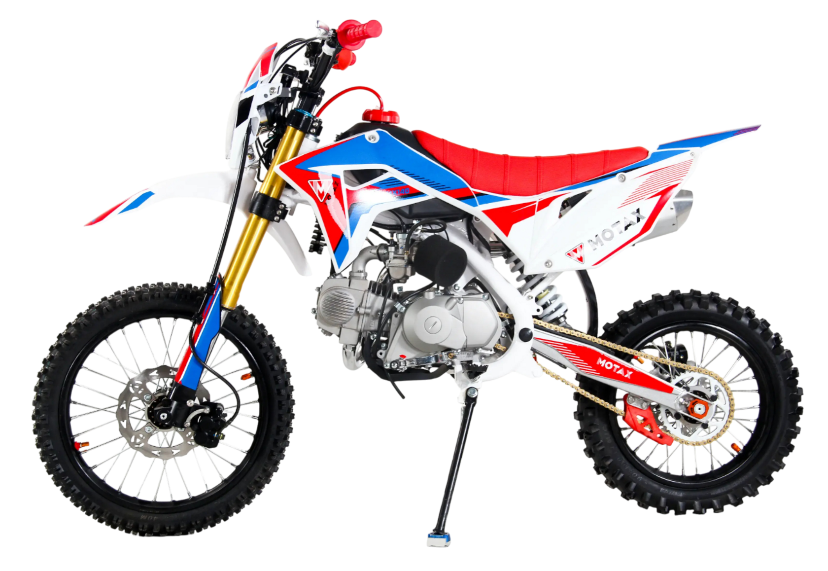 Взрослый бензиновый питбайк MOTAX MX 140 (17/14) оснащен четырехтактным бензиновым двигателем 1P56FMJ с верхним распределительным валом и масляным охлаждением, имеющим два клапана на цилиндр, что обеспечивает стабильную работу и длительный срок службы.