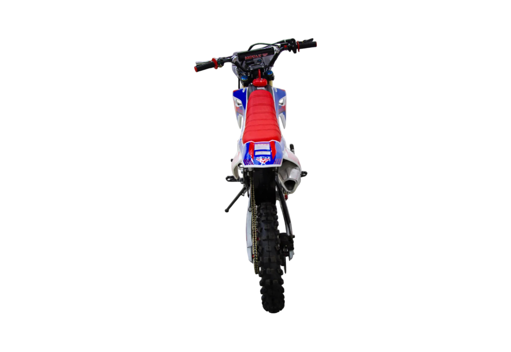 Четырехступенчатая трансмиссия (N-1-2-3-4) позволяет гибко управлять скоростью и мощностью мотоцикла MOTAX, что удобно для разных условий езды. Взрослый бензиновый питбайк оборудован гидравлическими дисковыми тормозами как на переднем, так и на заднем колесе. Подвеска нерегулируемая 45-48/735 (33). Размер покрышек: передние 70/100-17 и задние 90/100-14.