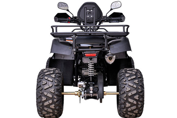 Максимальная нагрузка - до 160 кг. На квадроцикле 150 установлен передний и задний багажники, которые выдерживают нагрузку до 100кг каждый.