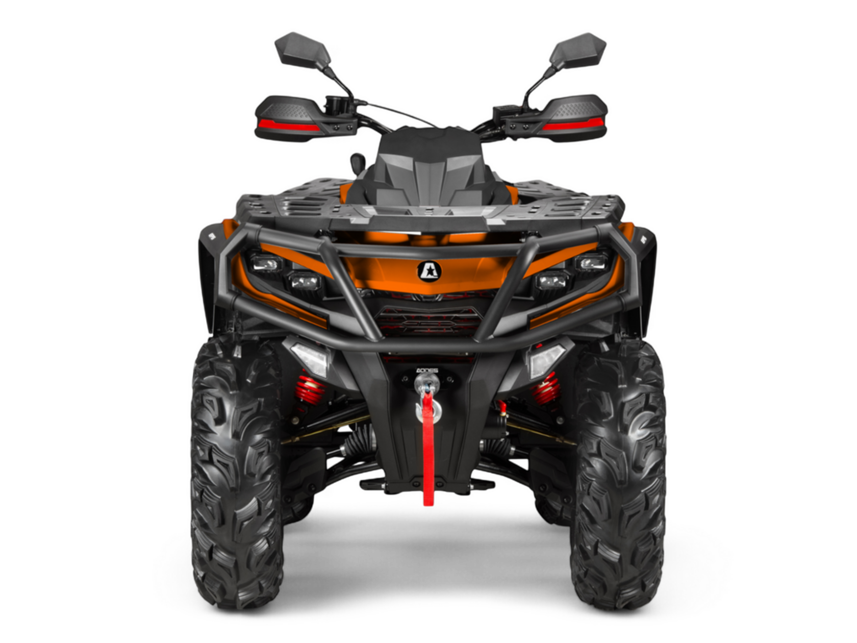 Комплектация Электронный ключ зажигания, LCD приборная панель 6,86 дюйма с индикацией основных параметров: вкл/выкл полного привода, индикацией уровня топлива, сигналов поворота и аварийной остановки, подсветки, переключение режимов усилителя руля, информация о техническом обслуживании. Лебедка Лебедка с синтетическим тросом и тросоукладчиком, тяговое усилие 1500 кг Элементы защиты Ветрозащита рук на руле, расширители колесных арок, усиленный передний и задний бампер, замок блокировки рулевого вала Дополнительное оборудование Электроусилитель руля, cветодиодная оптика, дополнительный свет, фаркоп с электроподготовкой, звуковой сигнал, сигналы поворота, зеркала заднего вида, бардачок объемом 2 литра под сиденьем, алюминиевые подножки водителя, эргономичная задняя и передняя багажные площадки, розетка 12 Вольт и USB.