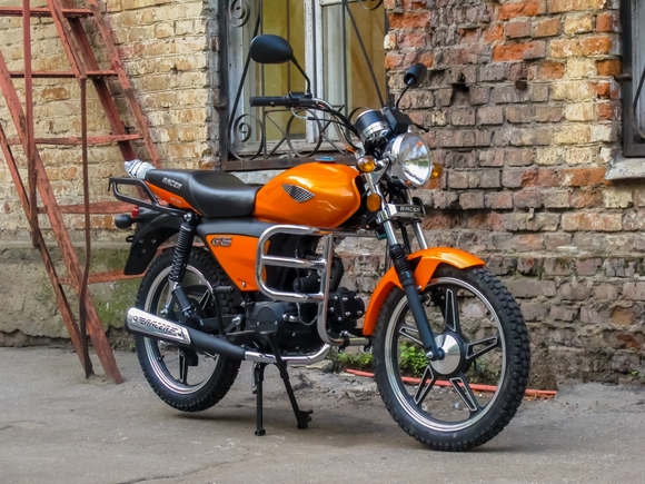 Комплектация Установлены барабанные тормоза спереди и сзади, пластиковая защита цепи, зеркала, багажник