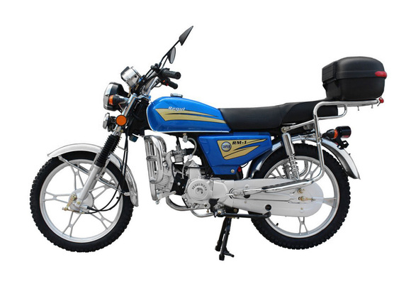 Комплектация Тормозная система – два барабанных тормоза. Усиленные тросы переднего тормоза и сцепления. Кроме того, на Regulmoto Alpha (RM-1) установлены зеркала заднего вида, подножки для пассажира, багажный кофр, кожух защиты цепи и дуги безопасности.
