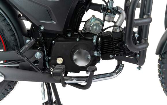ALPHA FORESTER RS 11 - богатая комплектация мопеда ALPHA RS c увеличенными колесами 18/18.На ALPHA FORESTER RS в комплектации предусмотрены защитные дуги, передний багажник, дополнительные складывающиеся железные дуги-подножки пассажира, которые можно использовать для перевозки дополнительного груза.FORESTER RS идентичен базовой версии в технической части - четырехтактный 110 кубовый двигатель с 4-х ступенчатой механической коробкой передач, электростартер. Этот мопед идеально подойдет для практичных людей, желающих увезти побольше груза.О модели:Возраст От 16 лет.Тип двигателя Бензиновый двигатель.Рабочий объем 110 куб.см., 6 л.с., 4-х тактный.Трансмиссия Механическая 4-х скоростная КПП.Система запуска Электростартер + кикстартер.Колеса: Переднее колесо 18-2.75 , заднее 18-3.00.