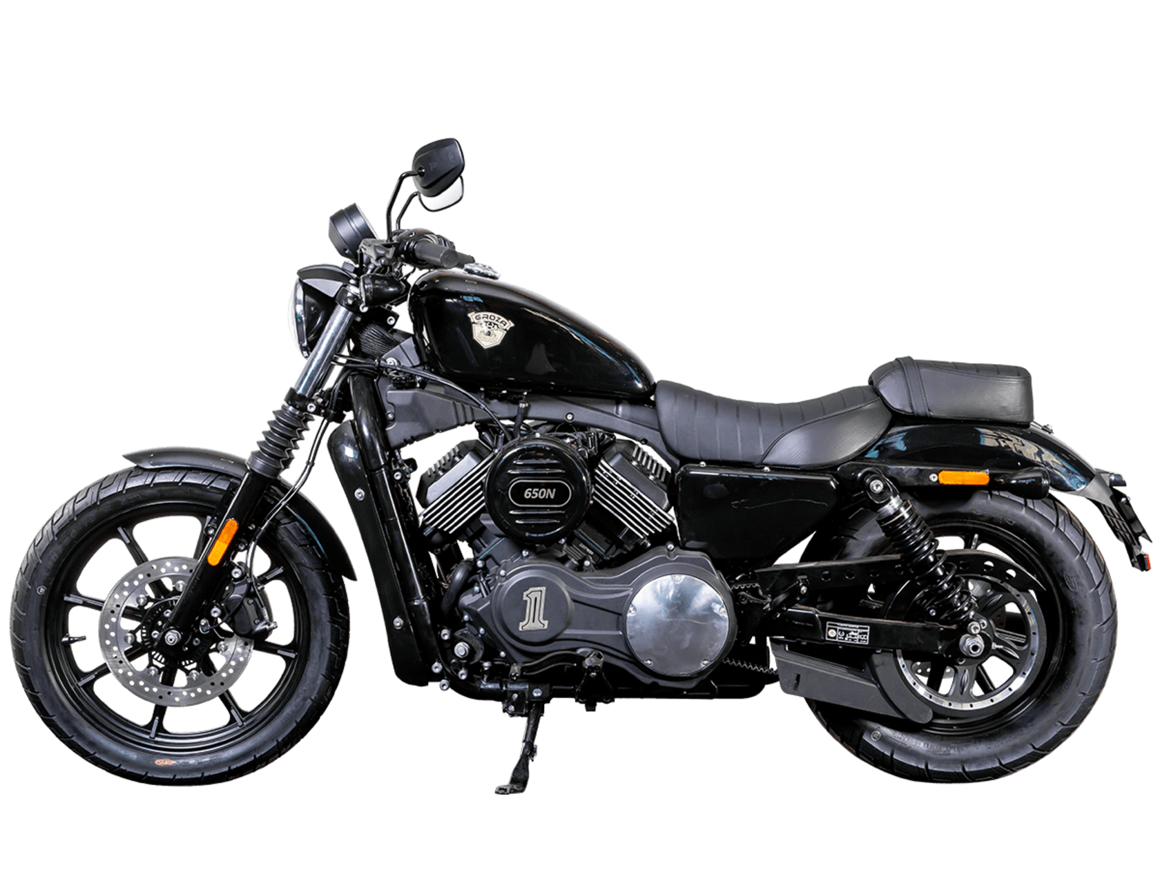 GROZA XS650 – шикарный круизёр, идеальный как для езды по мегаполису, так и для поездок по загородным дорогам. Его дизайн исполнен в классическом стиле, соответствующем всем канонам данного типа мотоциклов.Двухцилиндровый V-образный двигатель объёмом 650 см3 выдаёт внушительные 53 л.с. и при высоких показателях динамики и отличном крутящем моменте способен разгонять аппарат до 160 км/ч. Инжекторный впрыск топлива с инжектором DELPHI увеличивает топливную экономичность, а также позволяет добиться высокой приёмистости и неприхотливости агрегата. Привод на ведущее колесо осуществляется ремнём знаменитой марки USA Gates. Жидкостная система охлаждения не допустит перегрева мотора даже при самом агрессивном вождении.На аппарат установлена 6-ступенчатая механическая коробка передач с классической схемой “1-N-2-3-4-5-6”. Мотоцикл оснащён литыми алюминиевыми дисками диаметром 19 дюймов спереди и 17 дюймов сзади. С неровностями дороги эффективно справляются телескопическая вилка спереди и два газонаполненных амортизатора сзади. Задние амортизаторы являются регулируемыми, что обеспечивает лёгкую перестройку на различные режимы езды. Эффективное и безопасное замедление с любых скоростей обеспечивают гидравлические дисковые тормоза с ABS спереди и сзади.Несмотря на жидкостное охлаждение, двигатель имеет декоративные рёбра на цилиндрах, что придаёт ему очень привлекательный вид в общей композиции мотоцикла.XS650 сочетает в себе отличные технические характеристики, комфорт и надёжность, что позволяет вам ощутить настоящую свободу на любой дороге.