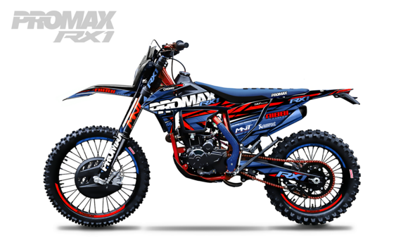 PROMAX – гарантия оригинального товара Тайванского бренда, с высоким качеством техники, подтвержденным ТРЕХЛЕТНЕЙ гарантией! Бренд известен по всему миру за его надёжность и соответствие мировым стандартам!Кроссовый мотоцикл PROMAX RX1 CB300RL (ZS175FMM-7) – заряжен на максимум! Большой бак, профессиональные комплектующие – это все для ваших МАКСИМАЛЬНЫХ результатов!В мотоцикле PROMAX RX1 установлен один из самый ТОПовых двигателей 300куб.см, CB300RL (ZS175FMM-7) имеющий 4-клапана на цилиндр, 6-ти ступенчатую коробку передач и балансовый вал для минимизации вибрации.Рама и двигательZS175FMM-7 на 300 кубов – мотор, обладающий потрясающей тягой на низах и стабильной работой на верхах. Компоновка мотора позволяет «снять» 29 лошадиных сил, чего достаточно для экстремальных покатушек. Питается мотор от карбюратора NIBBI RACING BLACK PE-30 SPORT-SERIES – ТОПовое решение для такой техники, к которому стремятся все производители. Топливный бак на 11 литров - покатушки закончатся не скоро! Все это установлено на раму проекта K8, выполненную из хромолибденовой стали и покрытой RAPTOR’ом – высокая прочность, легкий вес и колоссальный срок службы выводят данное сочетание в лидеры запросов по всему миру!Подвеска и колёсаРегулируемая подвеска, с широким диапазоном настроек гарантирует контроль над мотоциклом в любых дорожных условиях. Алюминиевые диски UNISON со спицами толщиной 4мм, «обутые» в GEMA обеспечивают необходимое сцепление даже в самых «грязных» условиях!Цепь и звёздыПриводная цепь Усиленная RK520 CHOHO TOP-SERIES – правильный выбор. Цепи производителя CHOHO завоевали рынок своим качеством и надежностью! Биметаллические звезды привода имеют огромный запас прочности – в такой связке замена приводных элементов наступит не скоро! Руль и сиденьеАлюминиевый руль TWINWALL оборудован короткоходной ручкой газа от NIBBI Racing и грипсами на замке, исключающими проскальзывание и сползание грипсы. Подушка безопасности на руле – неотъемлемая часть. Курки сцепления и тормоза – неломайки из фрезерованного алюминия от бренда NIBBI Racing! Элементы управления максимально прочные и легкие для достижения баланса мощности и веса! Сидень с противоскользящим покрытием удержит на себе райдера в критических ситуациях! Электроника и освещениеФара головного света – светодиодная, линзованная, с ярким световым потоком! Можно кататься не только днём! Для повышения безопасности в темное время суток предусмотрен задний габарит! Приборная панель с отображением информации о текущем состоянии стала уже классикой и данный мотоцикл не стал исключением – тут она есть. Влагозащищённые соединительные разъёмы электрической цепи – гарантия стабильной работы при эксплуатаций в различных условиях!Тормоза и пластикТормозная система ANJIE, с огромными, вентилируемыми, тормозными дисками остановят технику даже в самой сложной ситуации. Этому бренду доверяют профессионалы по всему миру за его надежность. Пластик рамы очень мягкий и не боится внешних воздействий – удары веток, шальные камни не повредят его, потому что это пластик проекта KTM’24!Сочетание ТОПовых материалов и ТОПовых брендов делает этот мотоцикл максимально подготовленным и «заряженным» к любым покатушкам – от любительского эндуро до экстремального заезда!