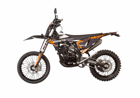Avantis Enduro 250 EFI Exclusive ARS — одна из главных новинок весны 2022 года. Это мотоцикл, в котором объединены комфорт, производительность и спортивные характеристики. Главным преимуществом модели является универсальность, которая складывается из производительного мотора с инжектором, продуманной геометрии и функционального тюнинга.Этот мотоцикл создан для спорта и эксплуатации в жестких условиях: все задействованные комплектующие имеют топовое качество и являются лучшими в своем классе. Да, это напрямую повлияло на цену, однако каждый потраченный рубль себя полностью оправдает. Это полноразмерный взрослый эндуро с соответствующими габаритами. Высота по седлу составляет 960 мм, поэтому на нем будет комфортно опытным райдерам с ростом выше 170 см — либо тем, кто умеет ловко запрыгивать на сидение с подножки. Это, пожалуй, единственное ограничение модели, так как в остальных аспектах Avantis Enduro 250 EFI Exclusive ARS не предъявляет к владельцу жестких требований: ни по весу, ни по уровню навыков.Несмотря на то, что Avantis Enduro — это спортивная серия соревновательного уровня, новая модель максимально дружелюбна даже к новичкам. Avantis Enduro 250 EFI Exclusive ARS легкий, отлично управляется и ловко маневрирует: как по городскому трафику, так и на бездорожье. Фирменная подвеска ARS без проблем справляется с неровностями рельефа и эффективно отрабатывает даже резкие приземления.База по осям 1500 мм в паре с дорожным просветом в 310 мм позволяет уверенно преодолевать препятствия, будь то высокие камни с валунами на пересеченке либо высокий бордюр в городе.На мотоцикле установлена однокартриджная подвеска ARS. Энергоемкая и длинноходная, она уже зарекомендовала себя на топовых мотоциклах Avantis и была неоднократно проверена на качество в самых жестких условиях.Спереди находится телескопическая вилка-перевертыш: рабочий ход 300 мм, диаметр пера 48 мм, длина пера 940 мм. На штоках с завода установлена пластиковая защита. Задняя подвеска — маятниковая: с моноамортизатором, алюминиевыми рычагами прогрессии на игольчатых подшипниках. Окрашенный маятник, как и во всей серии Enduro, полый и литой, что обеспечивает его солидный ресурс. При необходимости подвеска регулируется на сжатие, отбой и преднатяг пружины.В качестве базы для колес задействованы прочные и легкие обода от Unison, сделанные из алюминия. Покрышки — YangXing с агрессивными шашками и отличным зацепом, с завода укомплектованные буксаторами. Рисунок протектора позволяет уверенно проехать по маршруту практически любого уровня сложности, а ресурса комплекта хватит не на один сезон. Размерность колес наиболее популярная, 21” спереди и 18” сзади.Avantis Enduro 250 EFI Exclusive ARS является первым в России мотоциклом, оснащенным двигателем 172FMM-5 с воздушным охлаждением и инжектором. Такая комбинация позволила добиться уверенного подрыва и хорошей динамики во всем рабочем диапазоне. Кроме того, данное решение существенно снизило расход топлива — как во время интенсивных тренировок на бездорожье, так и во время поездок по городу.С одной стороны, двигатель 172FMM-5 уже задействован на других мотоциклах Avantis: например, им комплектуются модели А6, А7 и новинка А8. Однако наличие инжектора и топовая комплектация делают Avantis Enduro 250 EFI Exclusive ARS неоспоримым победителем в любых сравнениях.Мощность мотоцикла (при замере с коленчатого вала) составляет 25 лошадиных с