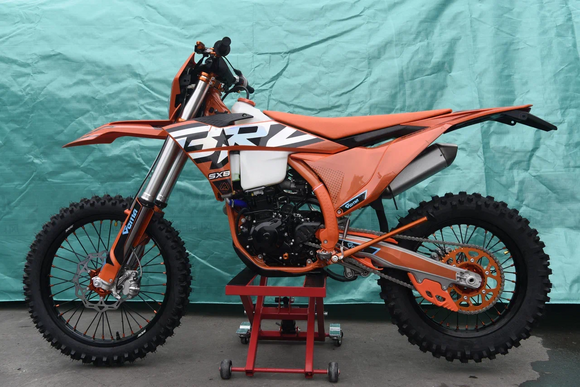 • Размер и тип колес – 21х18 обода алюминиевые, ККЕ, сплав 7 серии. Фрезерованные ступицы. Передние покрышки GEMA F-ENDURO 90/90-21, задние GEMA EX SUPER SOFT 140/80-18.
