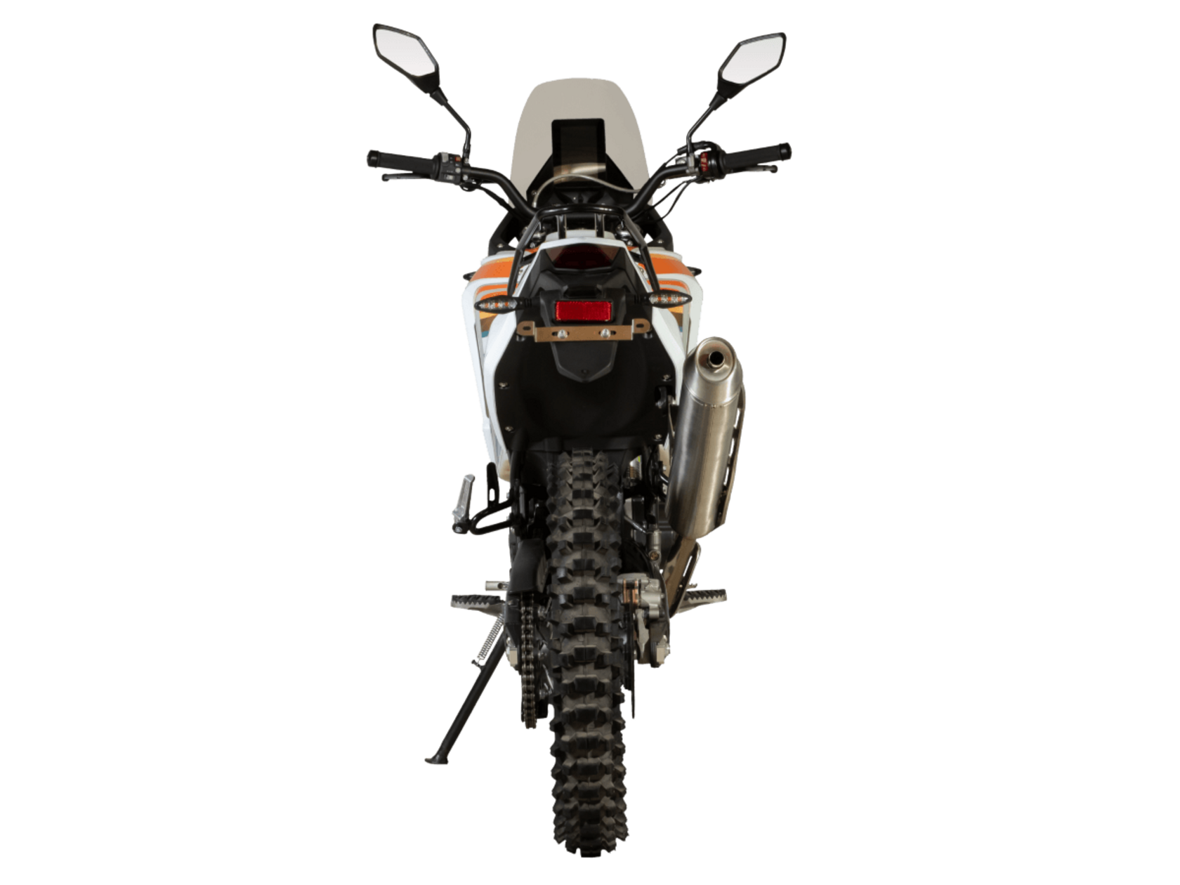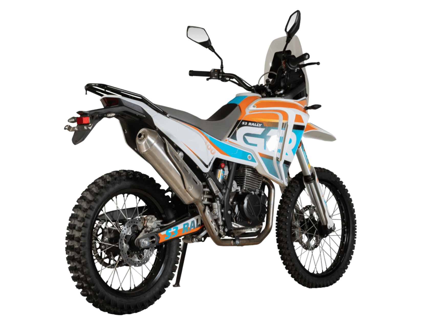 Мотоцикл GR S3 Rally 2025 – производительная техника с прицелом на раллийную выносливость: можно спокойно уезжать в дальняк, участвовать в любительских соревнованиях или просто отрабатывать сложные участки. Компоновка и технические решения говорят о прагматичном подходе: ресурс, ремонтопригодность, выносливость.У мотоцикла также есть ПТС, поэтому его можно зарегистрировать и смело передвигаться по асфальту, а не только по бездорожью.ОсноваОдноцилиндровый 4-тактный двигатель LONCIN объёмом 285,8 см³ с масляным охлаждением. Мощность – 25 л.с. при хорошем тяговом моменте на низах. Этого достаточно, чтобы ехать в подъём с навешанным кофром или пробивать линию по рыхлому песку. Карбюратор OST PWK 34 – простой в настройке и без капризов работает даже на бюджетном топливе.Коробка передач – классическая 6-ступенчатая с привычной схемой 1-N-2-3-4-5-6. Отработает любое решение – от маневрирования между камнями до уверенного разгона по прямой.ПодвескаСпереди вилка перевёрнутая, длина – 880 мм, с возможностью настройки на сжатие и отбой. Сзади – моноамортизатор длиной 450 мм, тоже с регулировками. Это позволяет адаптировать мотоцикл под нагрузку или конкретные условия: проглотит кочки, удержит курс.Колёса стандартные для эндуро: 21 спереди, 18 сзади. Хорошо работают в грязи, на камнях и песке. Протектор глубокий, держит сцепление уверенно. Тормоза – гидравлические дисковые, установлены спереди и сзади.ОсобенностьДальнобойный топливный бак на 21 литр – главный козырь. При умеренном расходе такой объём даёт возможность уходить в длительные поездки без дозаправки – полезно и для ралли, и для автономных маршрутов.ОснащениеВ GR S3 Rally есть всё, что нужно для долгой и уверенной езды: зеркала, звуковой сигнал, LED-светотехника, заметные поворотники. Важным преимуществом является наличие высокого ветрового стекла, прямой посадки для длительных маршрутов, цветного ЖК-дисплея, который позволяет держать под контролем основные параметры в пути, и линзованной оптики с чётким световым пучком. Это удачное сочетание в мотоцикле за такую цену.Также предусмотрены центральная подножка, важная деталь для обслуживания при стоянке в поле, и пассажирские подножки, которые дают возможность взять с собой напарника, а не ехать в одиночку.ГабаритыГабариты мотоцикла – 2120×820×1190 мм. Вес – 125 кг. Колёсная база – 1410 мм, а высота по седлу – 860 мм. В результате получаем мотоцикл, которым можно управлять стоя и на техничных участках, и на пересечёнке.GR S3 Rally 2025 – это техника с расчётом на нагрузки, которой можно пользоваться каждый день: надёжный двигатель, настраиваемая подвеска, цепкие колёса и автономность. Чем хуже дорога, тем вам будет интереснее.