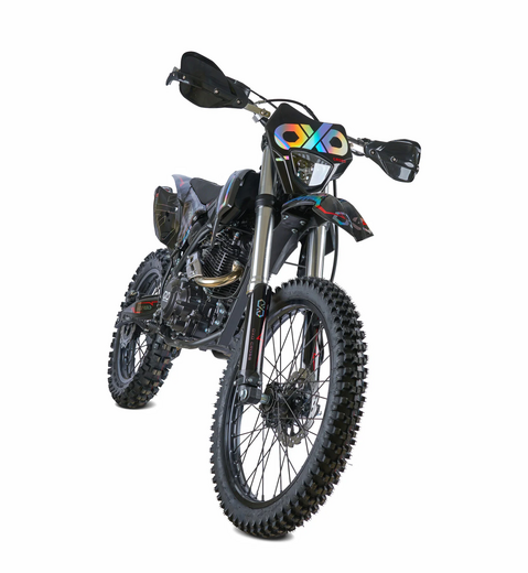 ДвигательМодель оснащена двигателем Zongshen 172FMM-3A с пятиступенчатой КПП. Особенностью двигателя, можно считать то, что данный двигатель является самым надежным среди серии моторов Zongshen.РамаРама мотоцикла OXO производится из труб шестигранного сечения хром-молибденовой стали, которая является очень прочной и легкой. Геометрия рамы, благодаря правильно выверенному центру тяжести и углу наклона вилки - способствует наилучшей управляемости устойчивости мотоцикла на низкой скорости.ПодвескаПередняя вилка перевернутого типа. Мотоцикл снабжен моноамортизатором, который соединен посредством системы рычагов прогрессии. Система прогрессии, обеспечивает равномерную, мягкую работу и увеличивает длину рабочего хода подвески.КолесаВ переднем и заднем колесах установлены антибуксаторы, которые притягивают покрышку к ободу, позволяя ездить по бездорожью при низком давлении в камерах, не давая покрышке проворачиваться во время езды. Размер передней покрышки: 80/100-21. Размер задней покрышки: 120/100-18. Они прекрасно себя ведут по песку и грязи, что позволяет райдеру отлично показать себя на пересеченной местности.Тормозная системаТормозная система мотоцикла - полностью гидравлическая с армированными шлангами. Спереди и сзади установлен двухпоршневой суппорт. Данная конфигурация тормозных механизмов, позволит быстро и безопасно остановиться с максимальной скорости даже на бездорожье.РульВажная часть современного эндуро мотоцикла - усиленный руль переменного сечения. На руле установлен рычаг заслонки подсоса. Алюминиевая ручка газа с коротким ходом имеет регулировку троса.