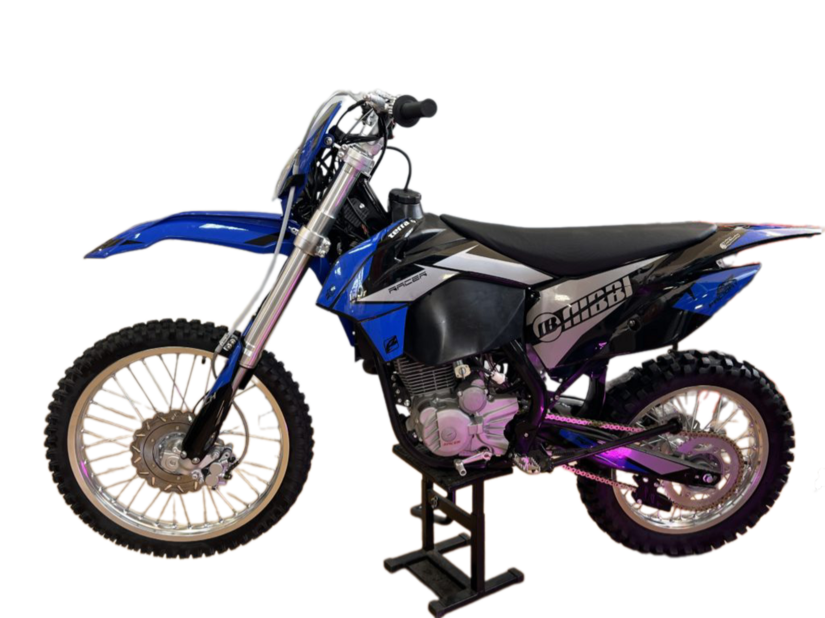 Обновленный Racer X1 с очень популярным двигателем воздушного охлаждения 172FMM 21л.с. 249см3. Полноразмерный мотоцикл спортивной направленности, с тяговитым двигателем, полностью регулируемой подвеской DNM, большим топливным баком и крутым дизайном.