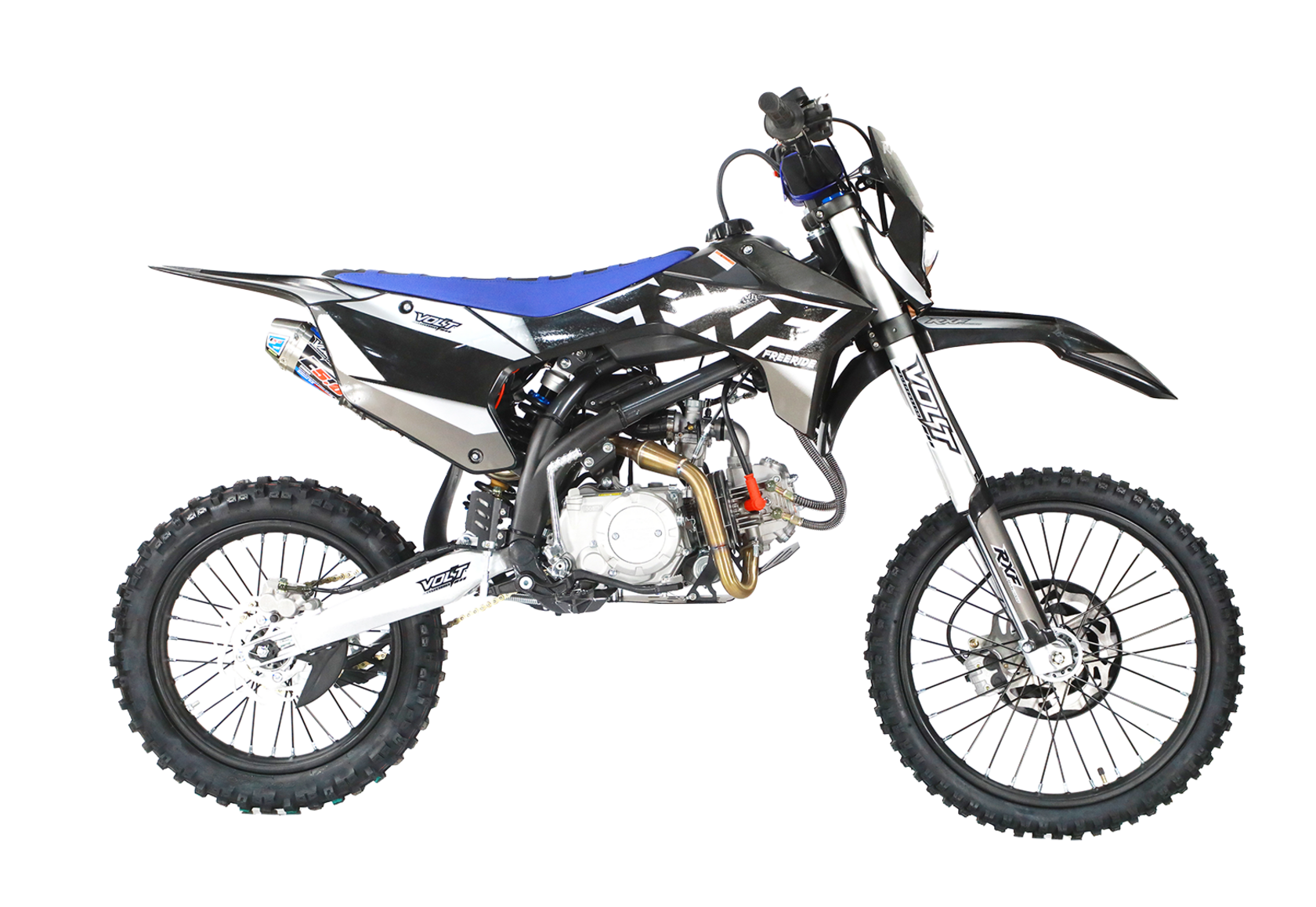 Питбайки компании Apollo родом из Франции. Головной офис компании расположен в Париже. Идеология, заложенная в бренд, носит спортивный характер. Улучшение “породы” происходит в гонках.Модели Apollo RXF (19/16) безошибочно узнаваемы благодаря хребтовой раме с V образным профилем боковой проекции начинающейся от точки крепления маятника под углом 45 градусов. Геометрия рамы была переработана и полностью учитывает размерность применяемых колес, а расстояние от подножек до седла одно из самых больших, что в свою очередь благотворно влияет на езду в стойке.Подвески питов оснащаются вилками и амортизаторами volt, топовые модели имеют регулировки по отбою. На всех моделях установлены двигатели YX, с объемами: 125, 140 и 150 см3 (последний с разными типами ГБЦ) Так же в модельном ряде появился самый кубатурный мотор ZongSheng 190 см3, оснащенный 5 ступенчатой КПП и электростартером.Хочется отметить, что компания Apollo в линейки RXF, закончило полноценную интеграцию и оптимизацию моделей под “большие колеса”. Это можно заметить при взгляде на питбайки в боковой проекции. Расстояние между баком и рулевой колонкой потеряло “зазор”, причина которого крылась в наращивание переднего треугольника под 17 колесо. Сейчас это пространство полноценно поглотил бак, который в свою очередь увеличил объем с 4,7 литров до внушительных 6,5 л. Полностью новый пластик оптимизирован под пропорции “выросшего питбайка”, сиденье стало тоньше и изящнее, боковые щитки увеличены в размерах, глубокий разрез по боковой линии подчеркивает раму, удлиненное заднее крыло и полностью новое передние, не оставляют шансов грязи. Тормозные диски получили пластиковую защиту, амортизатор брызговик, а карбюратор фильтрбокс. Продуманность компоновки питбайка выгодно отличает данную марку от других брендов.Проделанная работа позволила вернуть визуальную целостность модели, которой обладала вся серия Apollo на колесах 14/12.