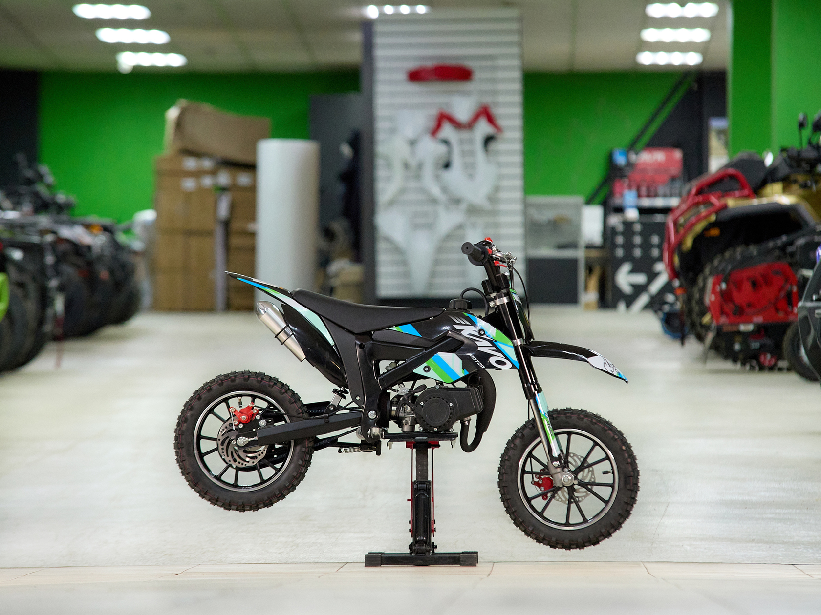 • Оснащён всем самым необходимым, прямо как “взрослая” кроссовая мототехника: динамическая подвеска, надёжные дисковые тормоза;