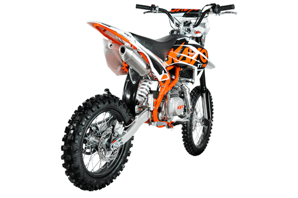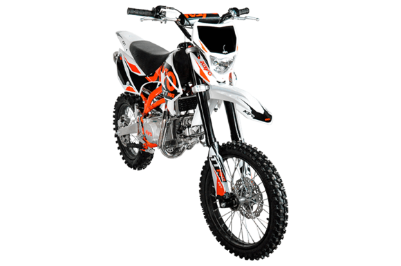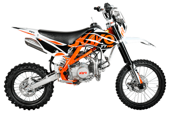 Питбайк KAYO Basic TT140 17/14 KRZ отлично подходит для освоения начального уровня в мотоспорте и утилитарных поездок по бездорожью. Обладает превосходной управляемостью, хорошей производительностью и высокой надёжностью.Оснащён одноцилиндровым 4-тактным двигателем YX1P56FMJ объёмом 140 см3 с воздушно-масляным охлаждением. Выдаёт мощность в 13 л.с. Карбюратор NIBBI PE19 обеспечивает бесперебойную работу техники в самых жёстких условиях. Лёгок в обслуживании и неприхотлив к качеству топлива. Имеет механическую коробку передач с 4 ступенями и схемой N-1-2-3-4. Запуск двигателя осуществляется с помощью рычага кикстартера. Ёмкость бака 5,5 литра.Питбайк оснащён классическими спицованными колёсами диаметром 17 и 14 дюймов, обутыми в агрессивную кроссовую резину. Подвеска спереди представлена телескопической вилкой перевёрнутого типа длиной 770 мм, а сзади – моноамортизатором длиной 360 мм. Тормоза дисковые гидравлические.Размер 1780х750х1120 мм, вес 73 кг. Высота по седлу 885 мм.Мотоцикл оснащён светодиодной оптикой, позволяющей устраивать заезды даже в тёмное время суток.