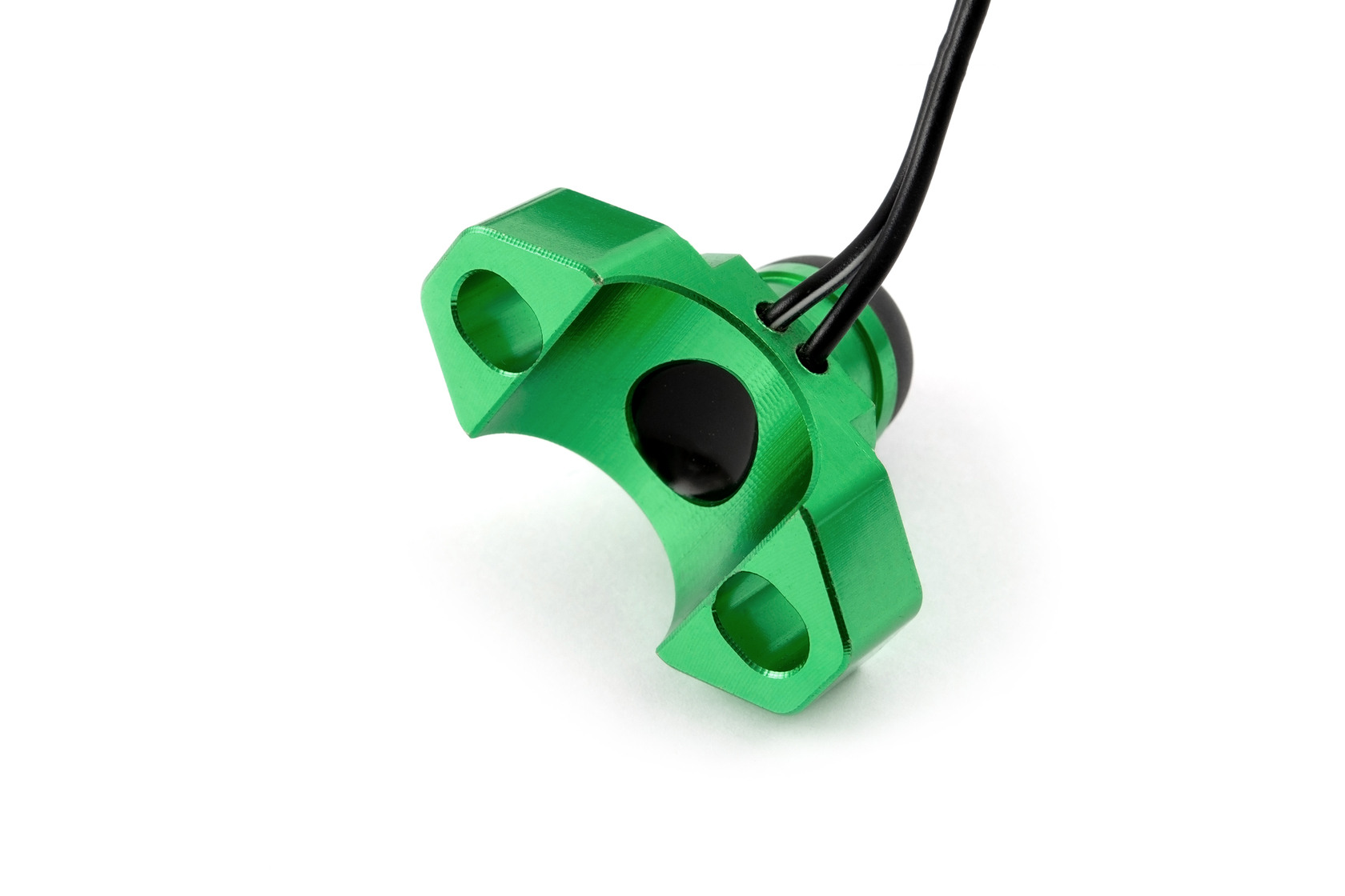 Универсальная кнопка запуска и остановки двигателя OTOM зеленого цвета. Выполняет функции включения или выключения двигателя в зависимости от схемы подключения. Корпус изготовлен из CNC алюминия, обеспечивает надежную влагозащиту. Стандартное крепление двумя болтами вместо штатного рычага сцепления или тормозной машинки. Подходит для установки как с левой, так и с правой стороны руля.