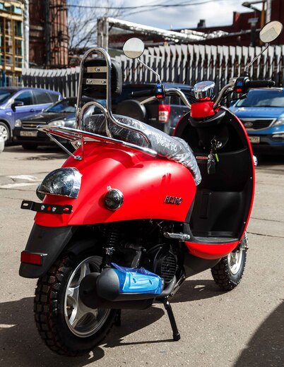 Главная ... Скутеры Скутер VENTO RETRO 49cc (150) сигнализация (99кг/100кг) (Красный Матовый)