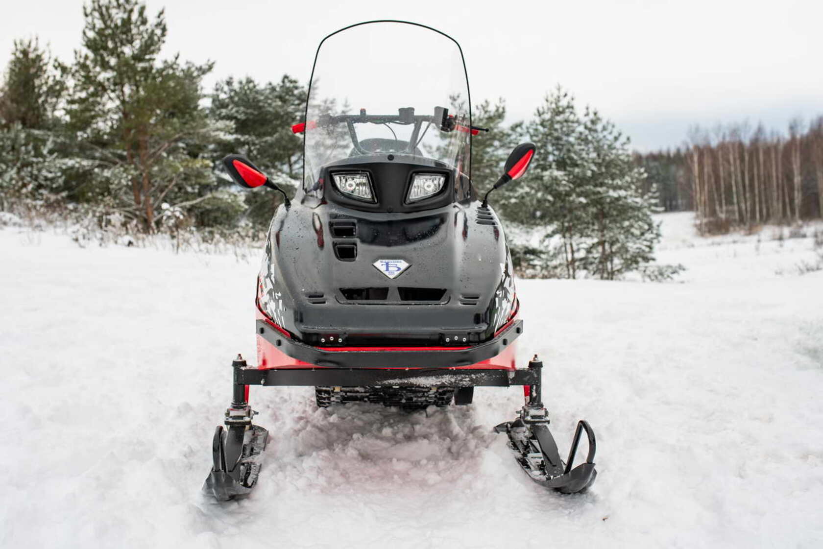 Снегоход из лимитированной линейки техники «Бурлак» в стильном черно-красном цвете и с обновленным дизайном капота. Мощный двигатель 20 л.с. обеспечивает стабильную работу и развивает скорость до 40 км/час. На приборной панели расположены тахометр, спидометр и счетчик моточасов. Багажник оснащен петлями для крепежной шнуровки. Улучшенные подножки имеют антискользящее покрытие. Ручки руля и курок газа с подогревом для комфорта использования в сильные морозы. Модель оснащена устройством для зарядки гаджетов, необходимым во время долгого путешествия. АКБ в комплект поставки не входит.