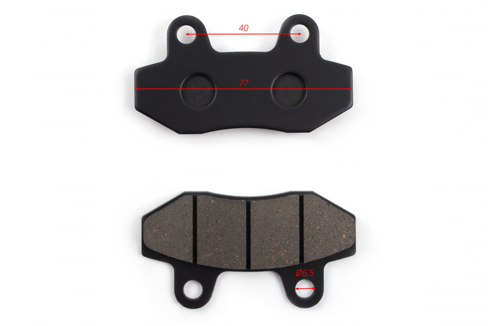 Колодки тормозные для мотоцикла и питбайка передние двухпоршневые.Устанавливаются на большинство питбайков с двухпоршневым передним суппортом.Так же иногда применяются спереди и сзади на некоторых эндуро мотоциклах.Стандартные двухпоршневые колодки для питбайков, мотоциклов и квадроциклов. Размеры: длина 77 мм, ширина 42 мм, толщина - 7 мм. Расстояние между центрами отверстий - 40 мм. Тормозные колодки на питбайк и мотоцикл меняются исключительно комплектом, а не по одной. После замены тормоза не сразу приобретают свою полную эффективность.Применимость колодок для китайских питбайков и мотоциклов:Колодки подходят для питбайков KAYO (как передние колодки)Для питбайков и эндуро мотоциклов JMC 125-250 (передние колодки)APOLLO 125-190 (передние колодки)SSSR 125 (передние колодки)AVANTIS ENDURO 250/300, MT250, FX250, A2, A7 (передние колодки, задние колодки)KAYO K1 /K2 / T2 MX (передние колодки, задние колодки)KAYO T2 (передние колодки, задние колодки)KATO T4 (передние колодки)RegulmotoZR, Sport 002/005 (передние колодки, задние колодки)Regulmoto Sport 003/001 (передние колодки)и другие.ВНИМАНИЕ! Перед заказом сравните размеры колодок с вашими,суппорта на моделях мотоциклов могли меняться в зависимости от года выпуска.